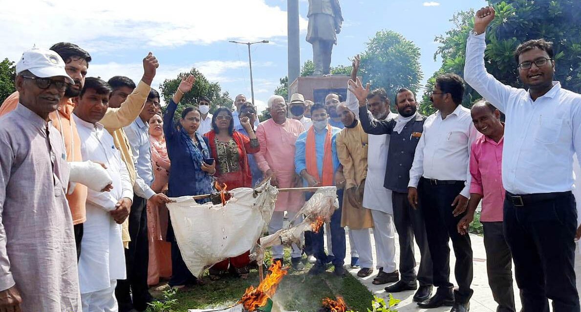 जिला न्यायलय के नजदीक राजीव चौक पर भाजपा जिला अध्यक्ष मा0 हुकमचंद यादव के नेतृत्व में राहुल गांधी व कैप्टन अमरेंद्र सिंह का पुतला फूंक कर रोष प्रदर्शन किया। प्रदर्शन को संबोधित करते हुए जिला अध्यक्ष हुकमचंद यादव ने कहा कि कुछ किसान संगठनों ने जो आंदोलन शुरू किया हुआ है व पूरी तरह से राजनीतिक है तथा उसके पीछे कांग्रेस की पूरी-पूरी साजिश है। अभी हाल ही में कैप्टन अमरेंद्र का एक ब्यान आया है जिसमें उन्होने किसान संगठन के लोगों को कहा कि इस आंदोलन से पंजाब की अर्थव्यवस्था को काफी नुक्सान पहुंचा है। आप लोग पंजाब में प्रदर्शन न करके हरियाणा व दिल्ली बॉर्डर पर प्रदर्शन करे और वहां की अर्थव्यवस्था खराब करे, जिससे साफ प्रतीत होता है कि किसान संगठनों के आंदोलन के पीछे कांग्रेस पार्टी का बहुत बड़ा हाथ है।