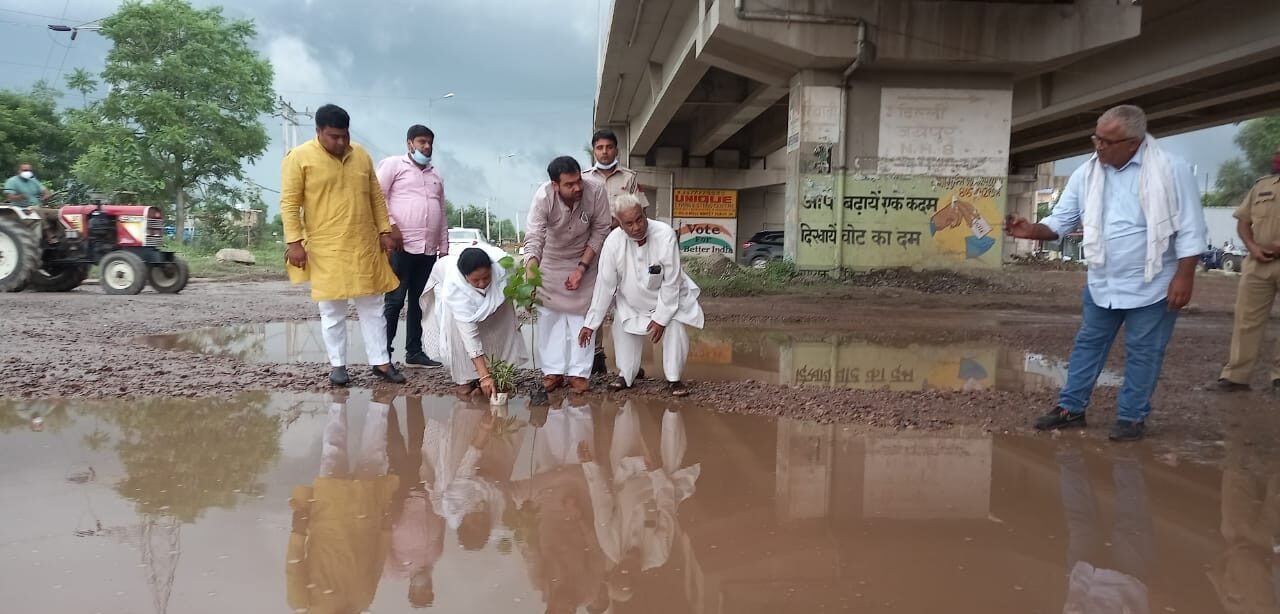 रेवाडी, मौजूदा सरकार और जिला प्रशासन की नाकामियों को उजागर करने के लिए रेवाडी विधायक चिरंजीव राव ने अनौखा तरीका अपनाया और उन्होंने एन एच 71 फ्लाई ओवर के नीचे रोड में बने गड्ढों में पौधारोपण कर अपनी नाराजगी जाहिर की। विधायक चिरंजीव राव ने कहा कि सरकार और जिला प्रशासन द्वारा जनता की समस्याओं की तरफ बिल्कुल ध्यान नही दिया जा रहा है। जहां से रोजाना हजारों लोग निकलते हैं वहां पर एक अच्छा रोड होना चाहिए वहां पर बडे-बडे गड्ढे हैं और शहर के पार्कों में जहां पर पेड-पौधों की तरफ ध्यान देकर पार्कों का सौंद्रीयकरण होना चाहिए वहां पर भी लोगों को परेशान होकर विरोध प्रदर्शन करना पड रहा है। इसलिए हमने इस सोई हुई सरकार और प्रशासन की आंखे खोलने के लिए रोड पर बने गड्डों में ही पौधारोपण कर दिया। क्योंकि सरकार द्वारा रोड तो बनाएं जाएगें नही कम से कम पर्यावरण तो संतुलित रहे।