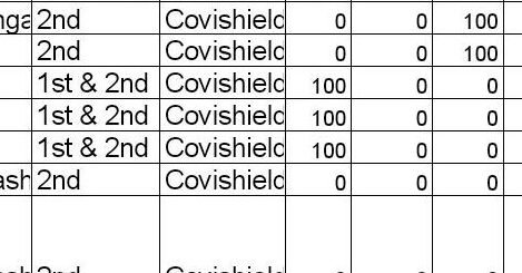 | Sr. No. | Site Name | Site Incharge | Dose | Vaccine | 1st Dose Online | 1st Dose Onspot | 2nd Dose Online | 2nd Dose Onspot |